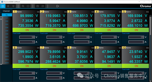 62000E系列機(jī)型提供可遠(yuǎn)程、多通道實(shí)時(shí)監(jiān)控的用戶圖形化操作軟件Softpanel,工程人員可輕易地進(jìn)行自動(dòng)程序步階控制(100個(gè)步階停留時(shí)間,范圍為10ms-65535s),以控制設(shè)備的輸出電壓、電流與自動(dòng)化測(cè)試應(yīng)用的I/O訊號(hào)輸出,并可進(jìn)行長(zhǎng)時(shí)間之量測(cè)與記錄數(shù)據(jù),特別適用于車用組件長(zhǎng)時(shí)間、周期性的壽命測(cè)試,且有助于產(chǎn)品的質(zhì)量控管與分析。