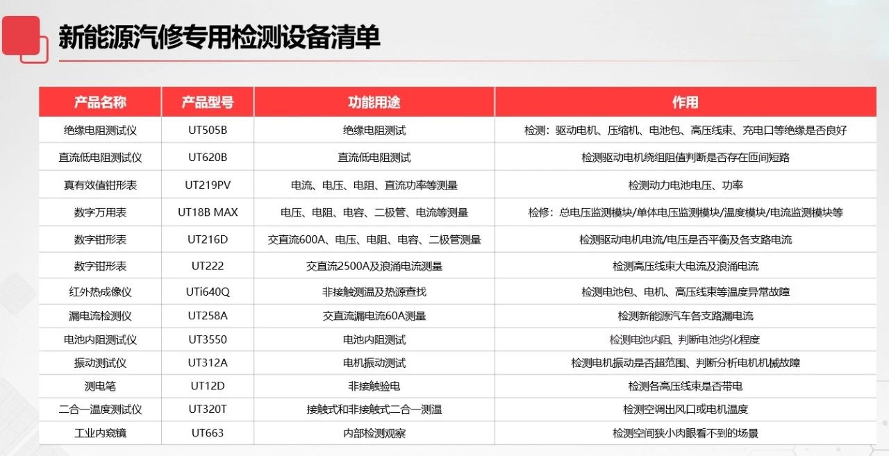 以上為優(yōu)利德提供的《新能源汽修專用檢測(cè)設(shè)備清單》,若您想要獲取完整方案,請(qǐng)掃描文末二維碼進(jìn)行下載。接下來,我們一起詳細(xì)了解下優(yōu)利德測(cè)試儀表在新能源汽車維修中的實(shí)際應(yīng)用。