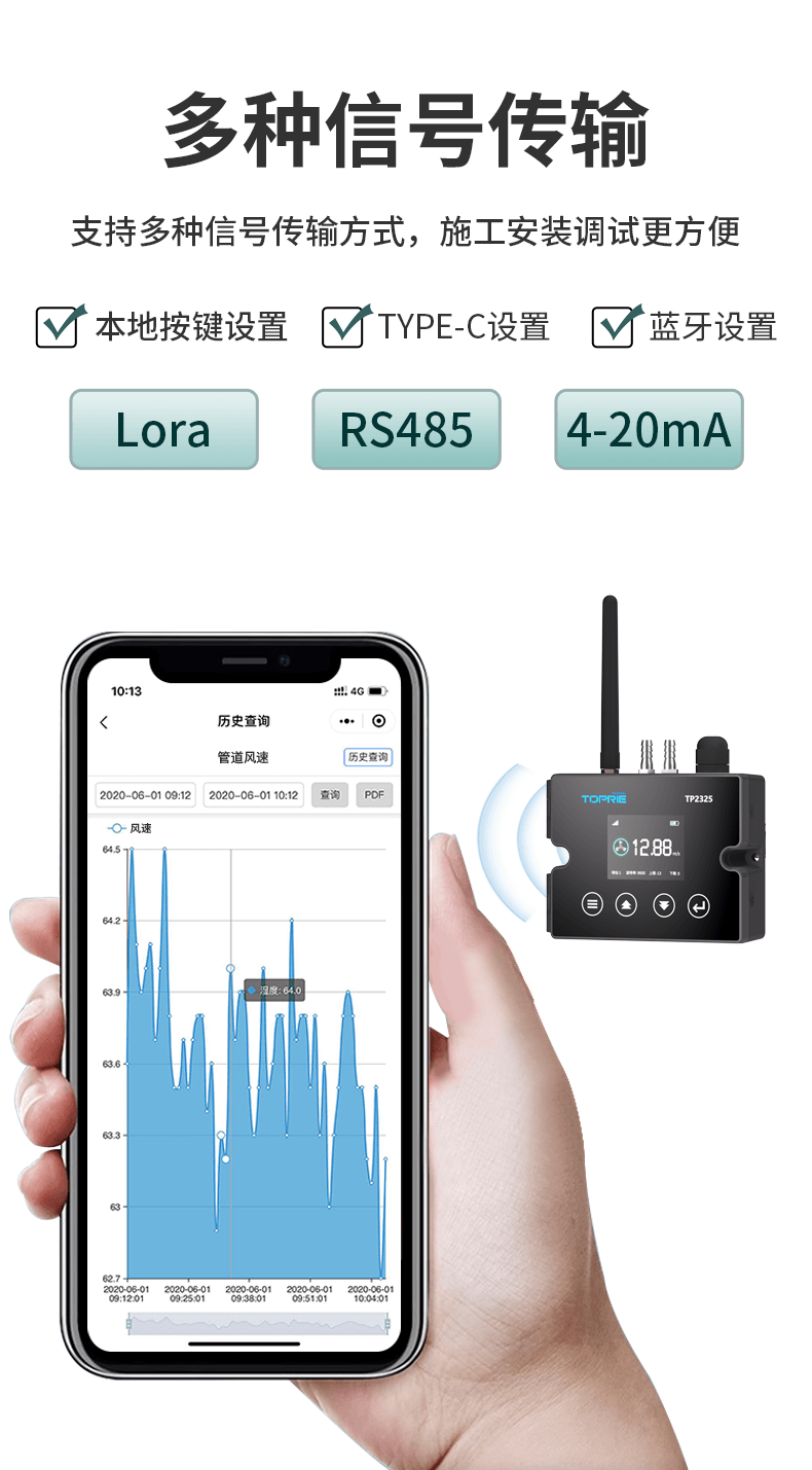 支持 RS485、4-20mA模擬輸出、LoRa、LoRaWAN、WiFi 等多種有線與無線通訊方式,可無縫接入現(xiàn)有控制系統(tǒng),也支持遠(yuǎn)程監(jiān)控與數(shù)據(jù)傳輸,特別適合老舊實(shí)驗(yàn)室改造或新建系統(tǒng)的靈活部署。
