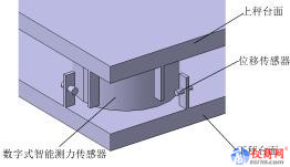 (1)平臺秤結(jié)構(gòu)一般為秤臺通過4只傳感器或多只傳感器浮動支撐,浮動支撐采用的是鋼球和球窩或者“不倒翁”結(jié)構(gòu),這兩種結(jié)構(gòu)都是滾動摩擦,而飛機(jī)在上秤臺以前,機(jī)輪與地面摩擦系數(shù)大于該兩種結(jié)構(gòu)的滾動摩擦系數(shù),飛機(jī)起落架的約束在秤臺上進(jìn)行了釋放,其向外側(cè)變形使得秤臺與傳感器支撐點發(fā)生移位,影響了飛機(jī)機(jī)輪輪距的測量精度;為此,須在秤臺平面的X、Y方向上下臺面之間各裝一位移傳感器進(jìn)行補償,如圖3所示,以保證飛機(jī)輪距的測量精度。
