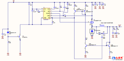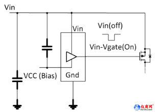 降壓控制器通常來源于參考電位(0V)的偏置電源(圖1a)。偏置電源來自輸入電壓;因此,器件需要承受全部的VIN電位。然而,因為開通P通道金屬氧化物半導(dǎo)體場效應(yīng)晶體管(MOSFET)所需的柵極驅(qū)動電壓在VGS低于VIN,P通道降壓控制器具有參考VIN(圖1b)的柵極驅(qū)動電源。關(guān)閉P通道MOSFET則僅需簡單地將柵極電壓變?yōu)閂IN(0V VGS)(圖2)。