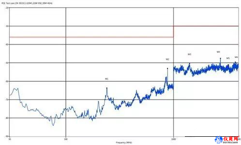 圖1 調(diào)試前輻射雜散測試結(jié)果
