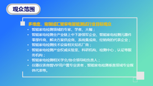 本次大會(huì)的主題將圍繞“智檢家電,智慧生活”展開,聚焦智能家電制造技術(shù)、檢測(cè)技術(shù)的最新進(jìn)展及其與5G、物聯(lián)網(wǎng)、人工智能等領(lǐng)域的融合創(chuàng)新。大會(huì)期間將舉辦一系列的主題演講、專題研討會(huì)和技術(shù)交流會(huì),邀請(qǐng)業(yè)內(nèi)知名專家、學(xué)者和企業(yè)家分享他們的見解和經(jīng)驗(yàn),共同探討智能家電行業(yè)發(fā)展新趨勢(shì),洞察智能家電產(chǎn)業(yè)市場(chǎng)演變格局。