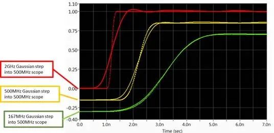 500MHz范圍測量高斯模型的階躍響應(yīng)的曲線